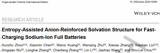 碳中和技术创新研究院李林团队联合安徽大学张朝峰在国际权威期刊Angew. Chem. Int. Ed.上发表题为《Entropy-Assisted Anion-Reinforced Solvation Structure for Fast-Charging Sodium-Ion Full Batteries》的学术论文。本文提出了一种具有阴离子增强型溶剂化结构和高离子电导率的混合酯醚电解液,诱导阴离子衍生的坚固电极-电解液界面的形成。将弱溶剂化的醚基溶剂四氢呋喃(THF)引入到碳酸丙烯酯(PC)基电解液中,记为1.0 M NaPF6-PC/THF,调节更多的PF6-阴离子参与到Na+内鞘中,加速脱溶过程。此外,由熵效应引起的分子多样性增加的弱溶剂化结构可以增强离子电导率和快速的界面动力学。18650圆柱PB||HC全电池在100次循环后容量保持率为82.5%。这项工作强调了熵辅助的混合酯醚电解液在高性能钠离子电池中的潜力。金沙官网相关的文章发表在Angew. Chem. Int. Ed.上,金沙官网