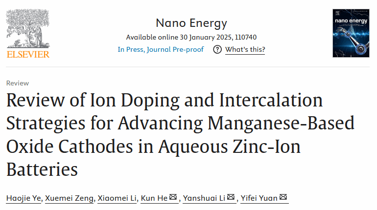 该综述论文以“Review of ion doping and intercalation strategies for advancing manganese-based oxide cathodes in aqueous zinc-ion batteries”为题发表于纳米能源领域国际顶级期刊⟪ Nano Energy ⟫(IF=16.8,中科院一区)。温州大学为第一通讯单位,我校金沙官网