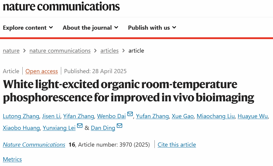 该论文以“White light-excited organic room-temperature phosphorescence for improved in vivo bioimaging”为题发表于国际顶级期刊⟪Nature Communications⟫上。温州大学为第一通讯单位,金沙官网