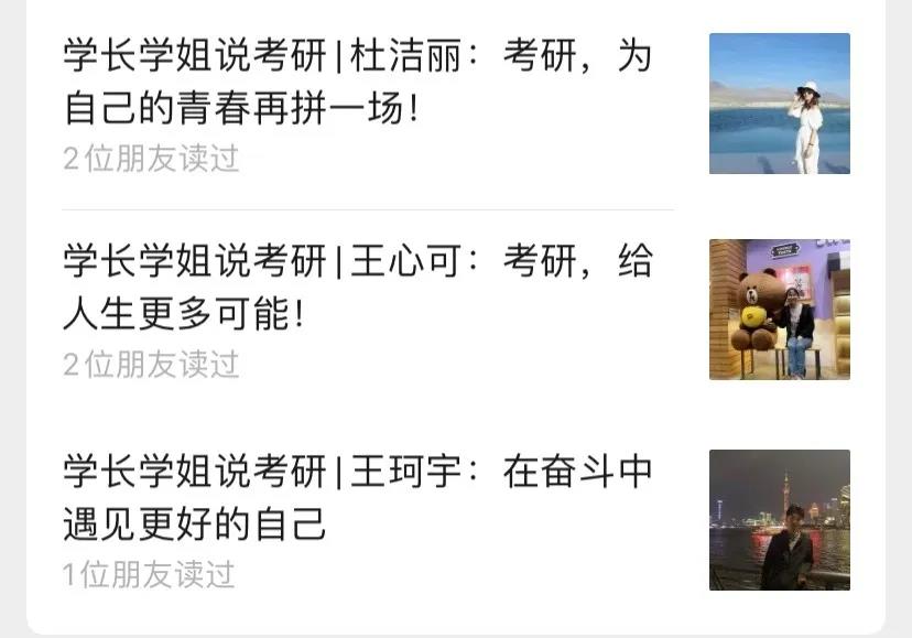 公众号推发考研相关内容,整合考研相关信息,分享考研成功的学长学姐的考研经历和读研生活,鼓励同学们考研。