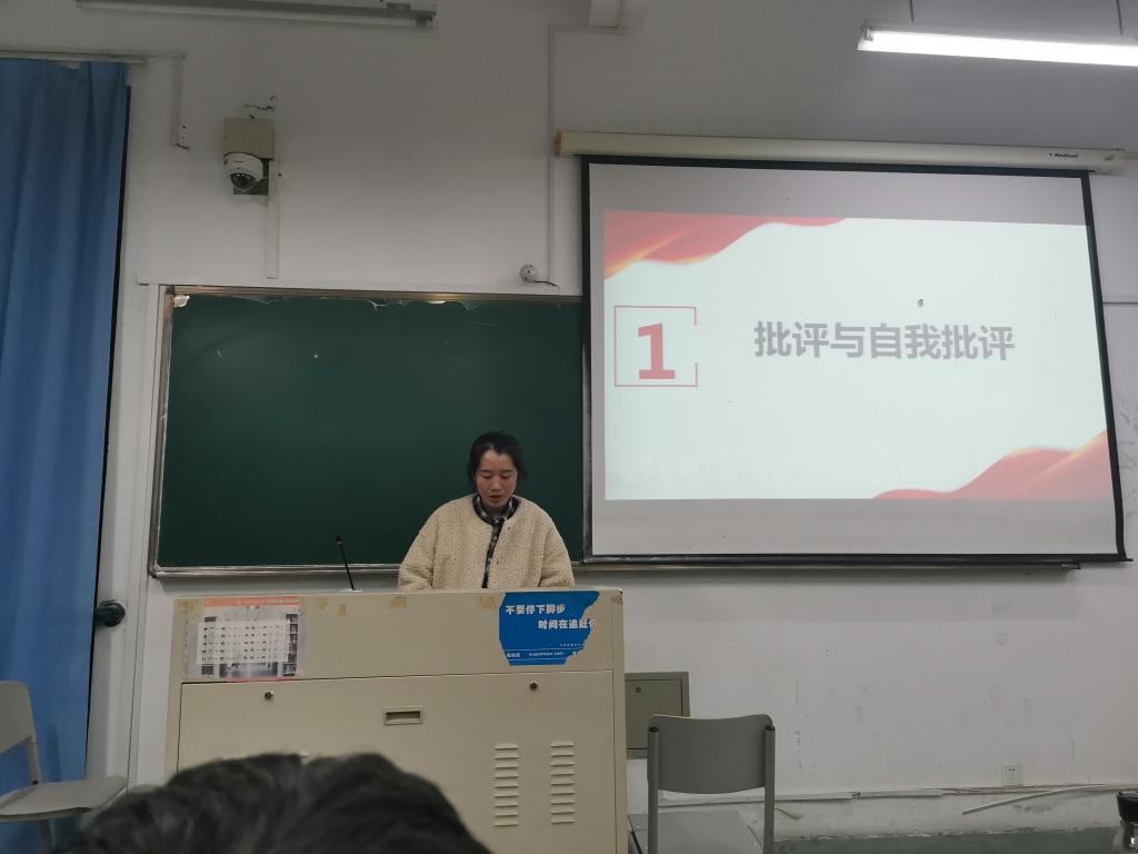 在此次大会上各党员同志对自己一年的情况进行了深刻的反思。刘晓霞同志在批评会上谈到了自身理论学习不够深刻,不够主动;王玉龙同志谈到了自身的工作效率不高的问题;叶香珠、蒋梦月、丰嘉颖、丁雨樵同志则是谈到了自身因个人考研原因而忽视了支部内工作,没有认真履行党员应该服务群众的义务等问题。