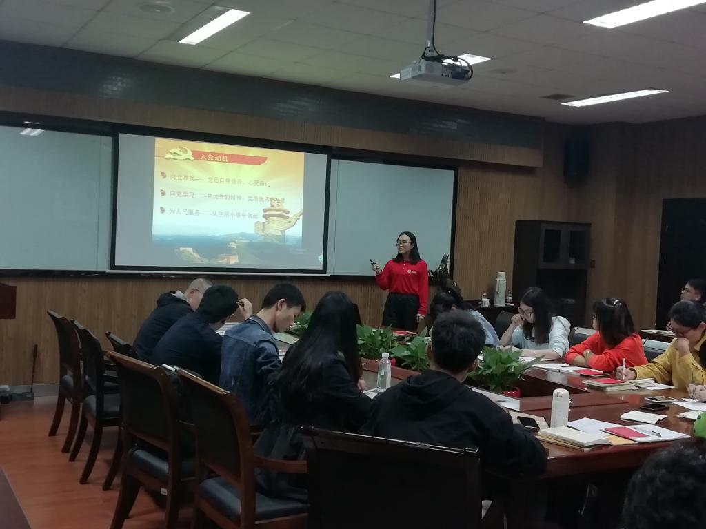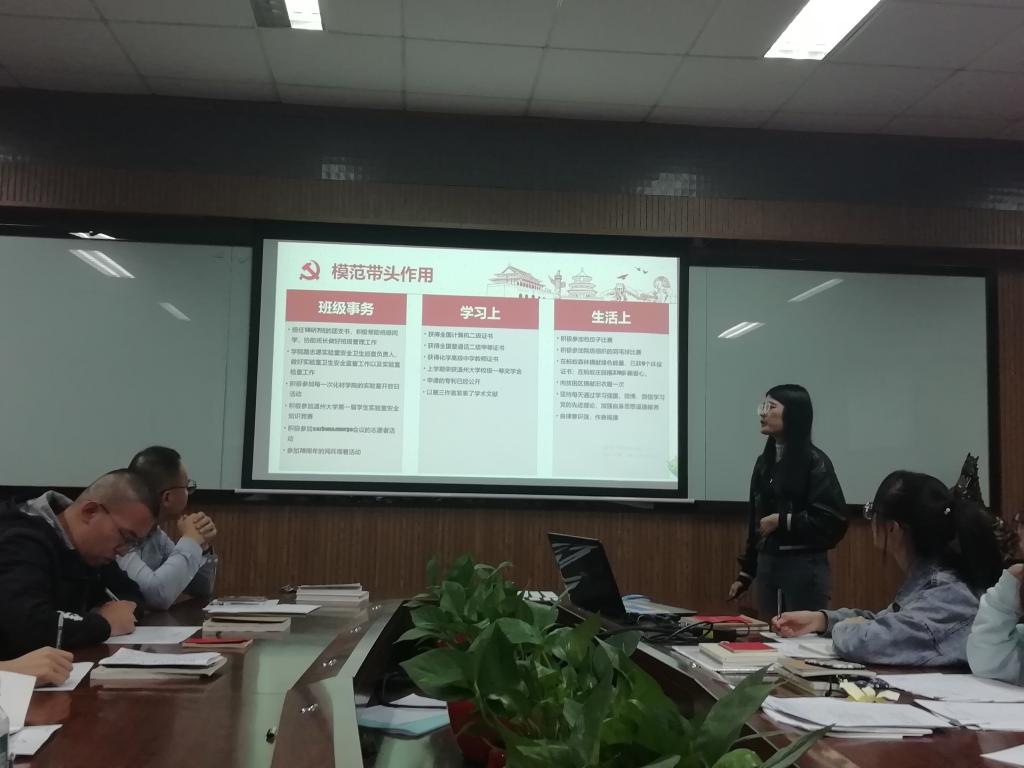 研究生第三党支部在化材楼11B-204会议室召开学生党员发展对象评选答辩会。会议由支部书记贾雅君同志主持,支部内15名党员及全体积极分子参加了本次答辩会,同时还邀请研究生辅导员邹涌彬老师莅临指导。