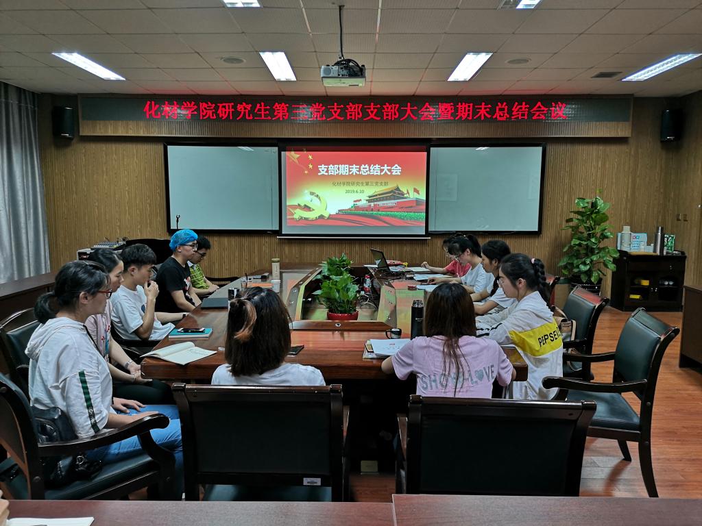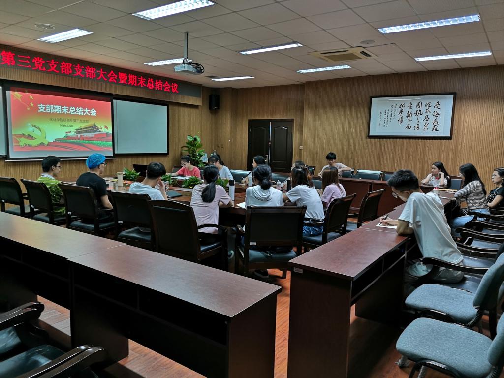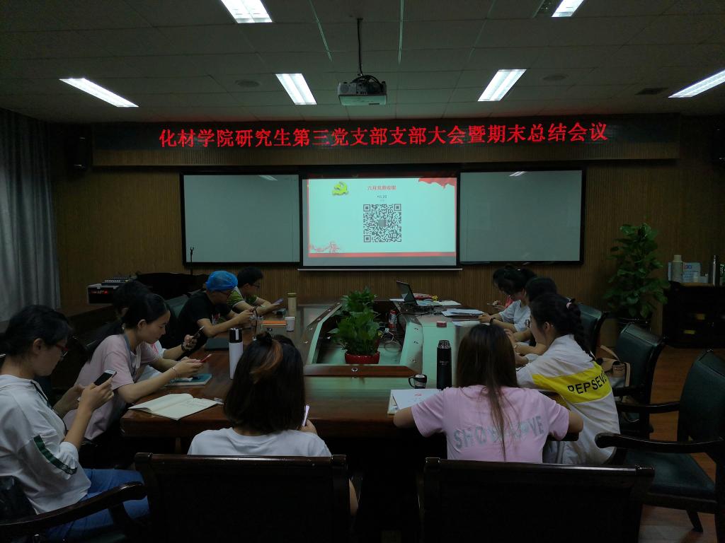 研究生第三党支部在化材楼11B-204召开了支部大会暨支部期末总结会议。本次大会由支部书记贾雅君同志主持,支部全体党员参加了本次会议。
