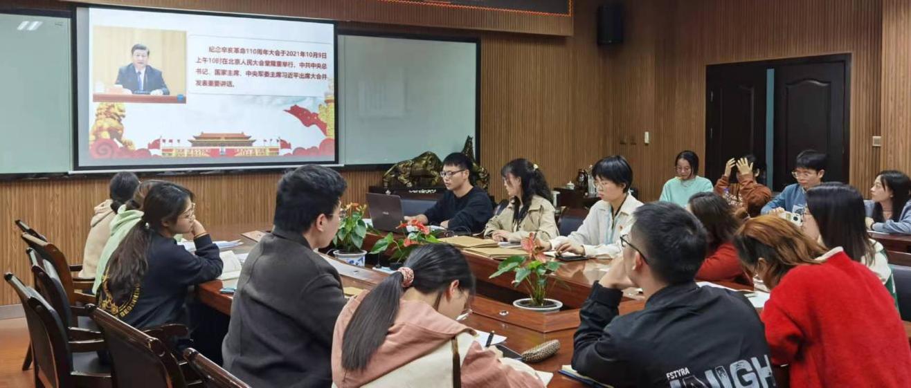 研究生第二党支部召开十月份组织生活会,贯彻学习习近平总书记在纪念辛亥革命110周年大会上的讲话精神。此次学习由周宇峰同志领学,支部全体成员参与学习。