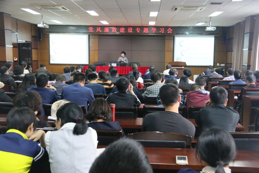 在11B-208会议室召开党风廉政教育大会,学校审计处处长王艳为全院教职工就科研经费在使用中的相关政策做专题报告。会议由金沙官网