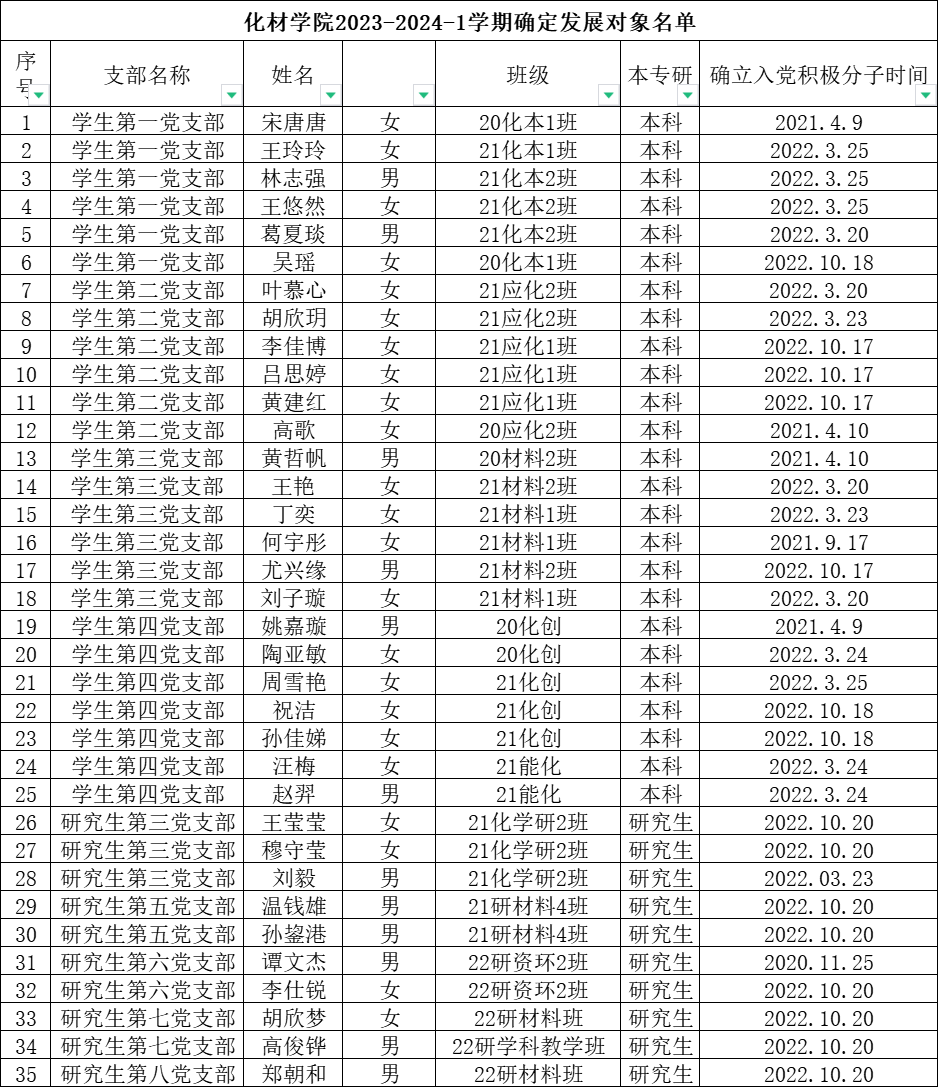 经本人申请,党组织一年以上的培养教育和考察,各支部于近期组织发展对象公开答辩,并征求党员、群众和培养联系人意见,召开支部大会讨论研究,拟确定宋唐唐等35名入党积极分子为发展对象。公示后报金沙官网