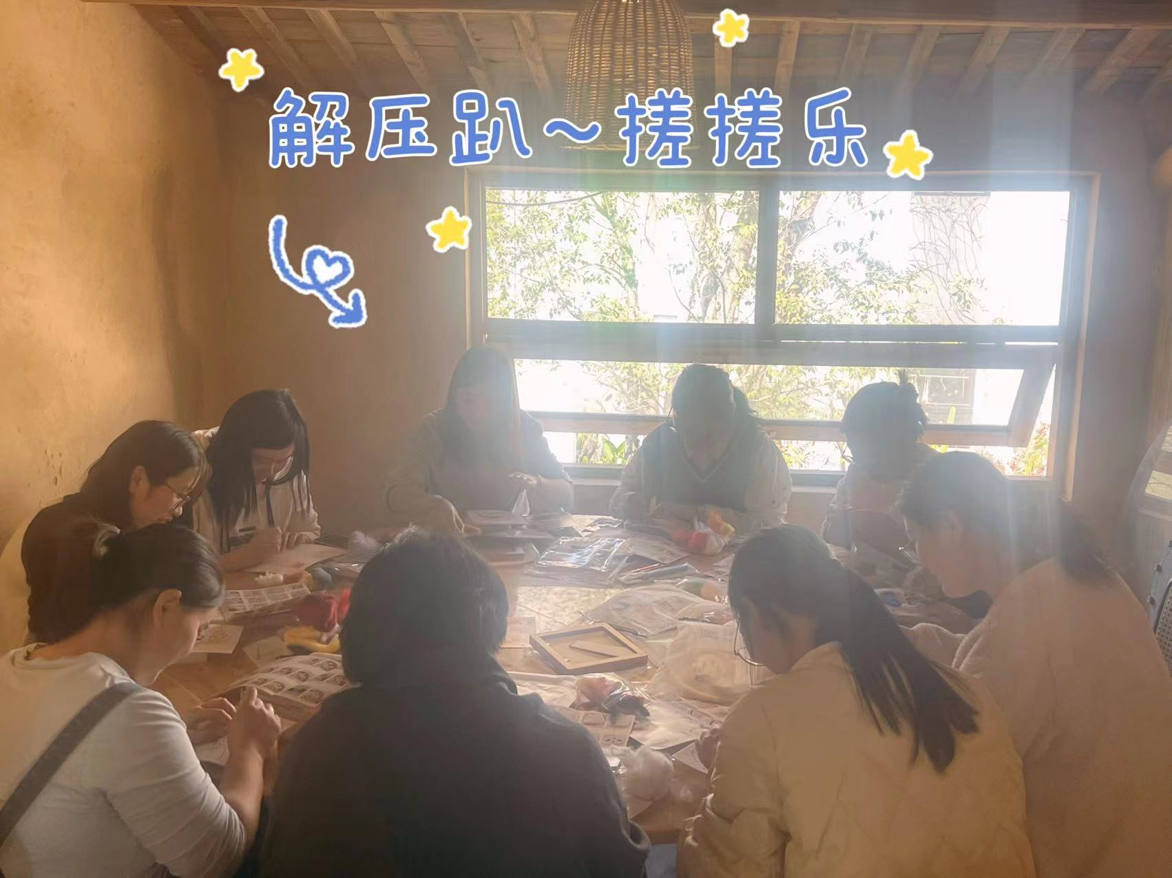 佳人们赴山根音乐艺术村开展“下午茶·花艺·桌游”活动。我们分别体验了清新淡雅的花艺活动,紧张刺激的狼人杀,解压舒缓的羊毛毡搓搓乐,还有轻松自在的下午茶。