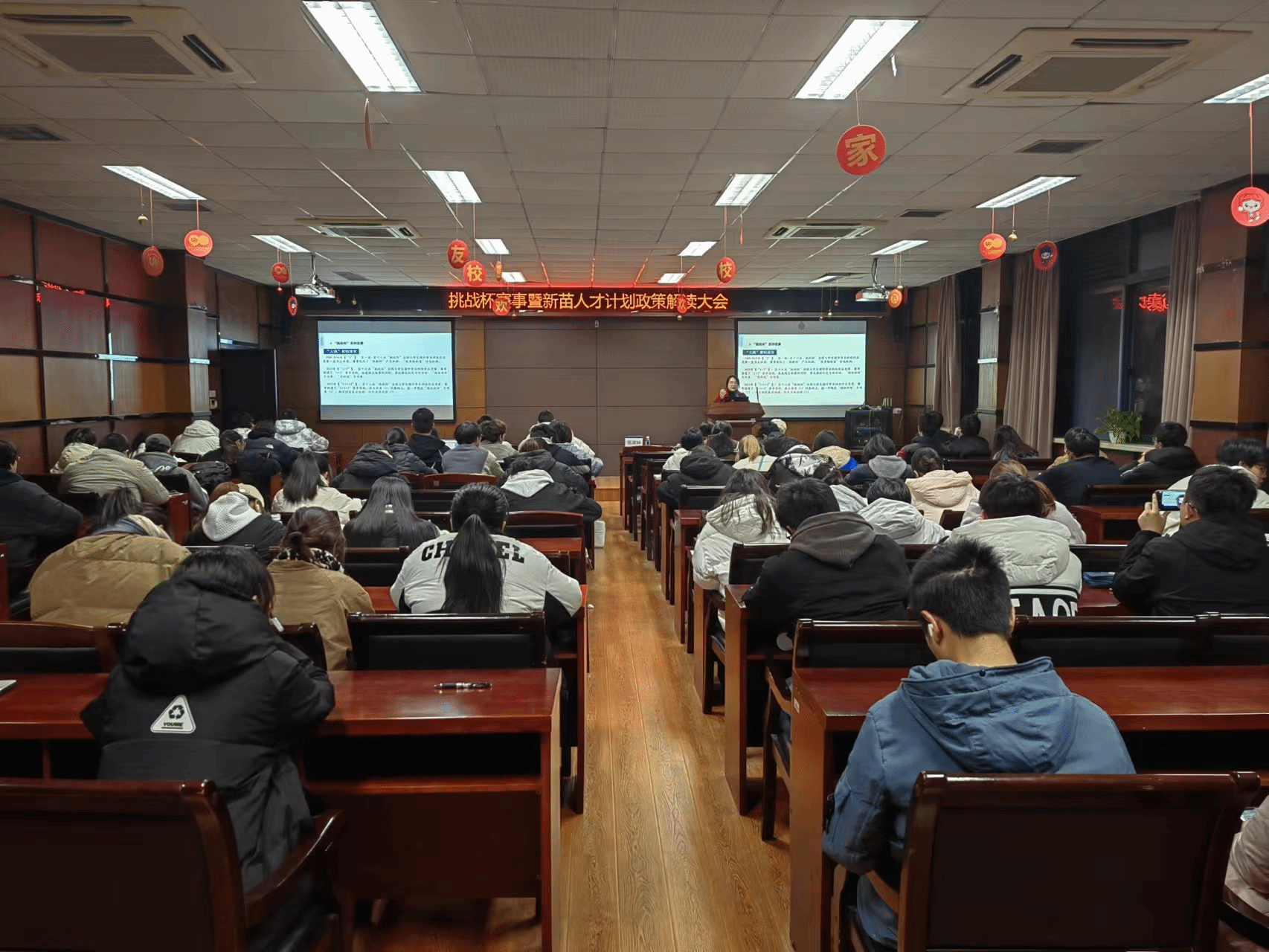 做“‘挑战杯’系列竞赛参赛与政策解读”为题的讲座。