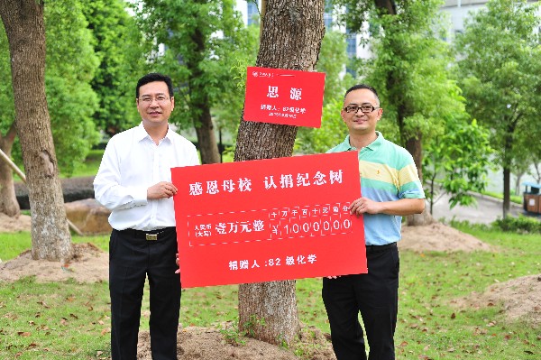 的持续关注和支持。在同学们简短的自我介绍后,陈迈、陈仁尔班长代表全体同学充分表达了对老师和学校的感恩之情,对同窗的深切友情。林娟娟副书记深情回顾了当年担任班主任的情景,真诚邀请校友常回母校看看,始终如一地关心母校和母院发展。为感恩母校,82化学校友向母校捐赠10000元,在校友林认捐“思源树”,寄托学子对母校的深情厚谊和感恩之情。为感恩金沙官网