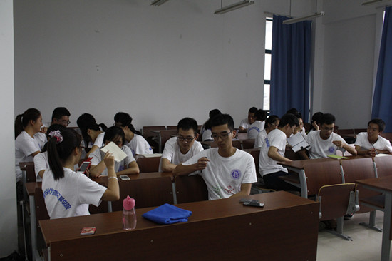 “化材之光”暑期社会实践队于11B208整理校友采访、企业走访以及问卷资料,“化材之光”全体队员参与了此次活动。