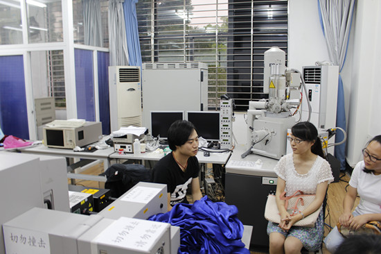 采访开始前,杨臣学长热情地带领队员们参观了他的学习环境,并给我们介绍了他实验室的一些仪器以及目前的学习状况。